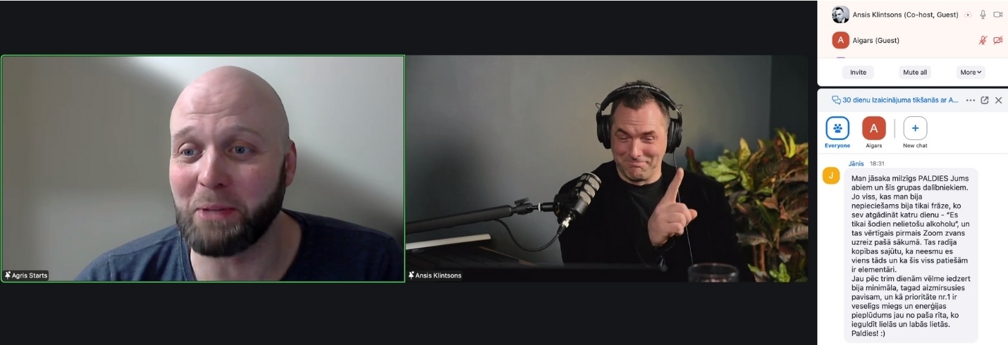 Iknedēļas tiešraides Zoom sesijas katru ceturtdienu ar Ansi Klintsonu un Agri Startu — jautājumi, atbalsts un dalīšanās ar pieredzi.